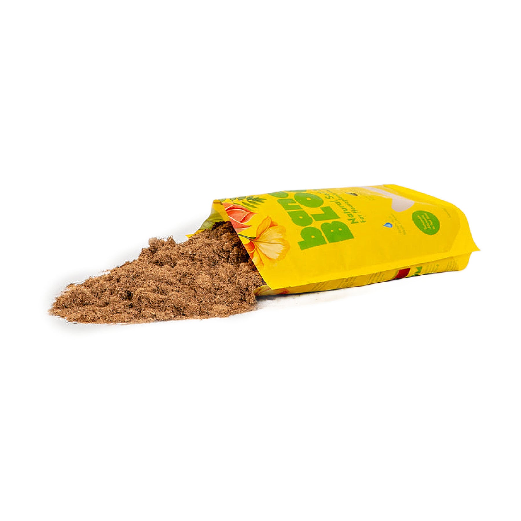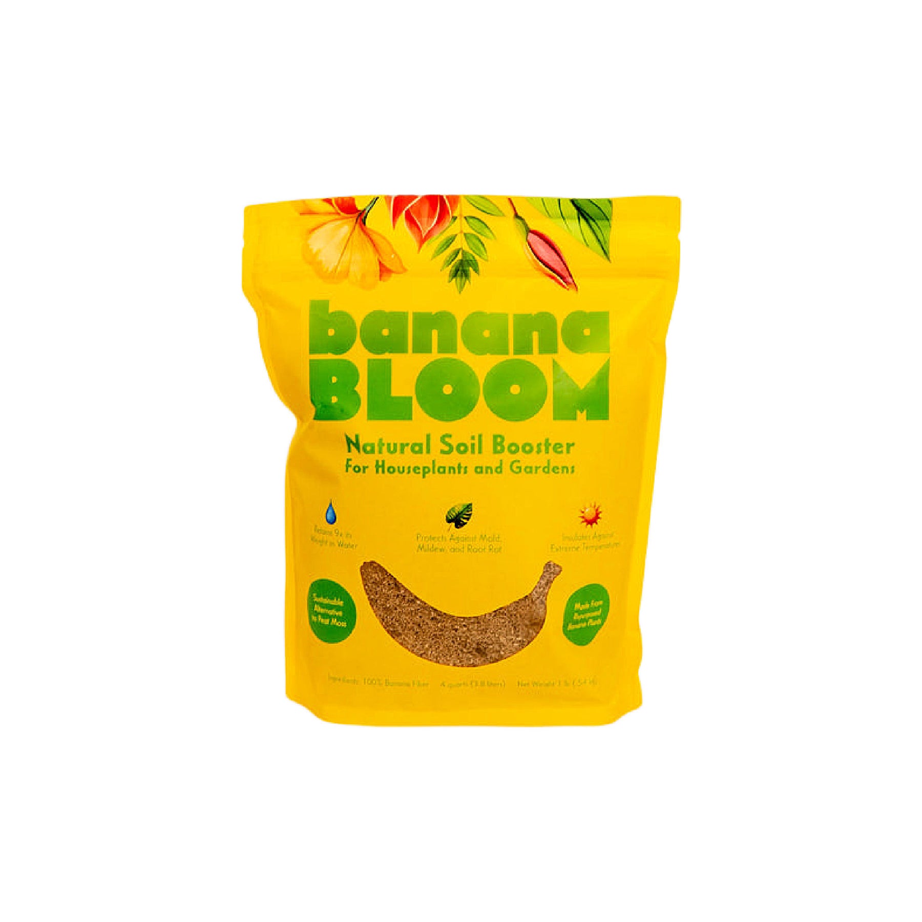 Banana Bloom Natural Soil Booster helps hydrate soil evenly, avoiding both overwatering and underwatering. Retains nine times its weight in water, while promoting airflow in soil. Protects against mold, mildew and root rot. For use with potted plants or garden soil. When used as a mulch, Banana Bloom insulates against extreme sun and heat exposure. Made from repurposed 100% banana plant fiber. A sustainable alternative to peat moss. Minimally processed and chemical-free. A little goes a long way - mix 10%-20% into soil or sprinkle on top of soil. 4 qt. bag.